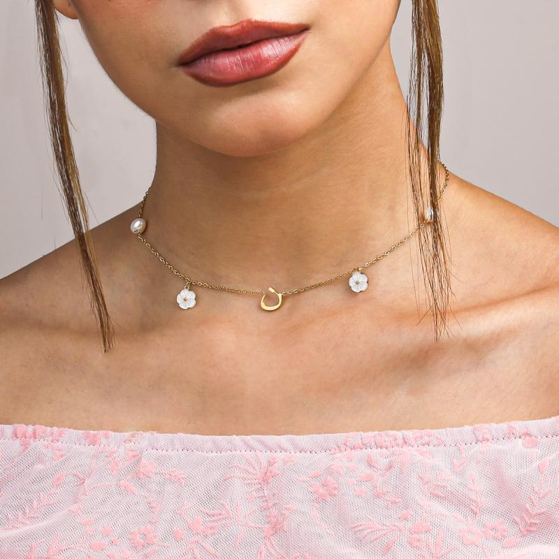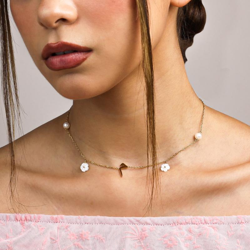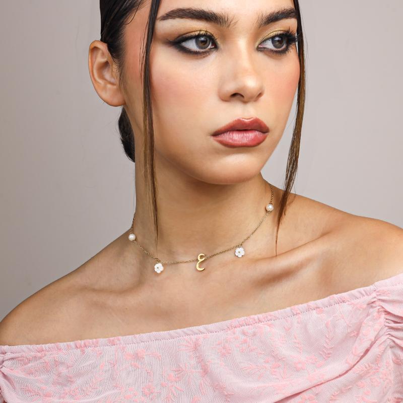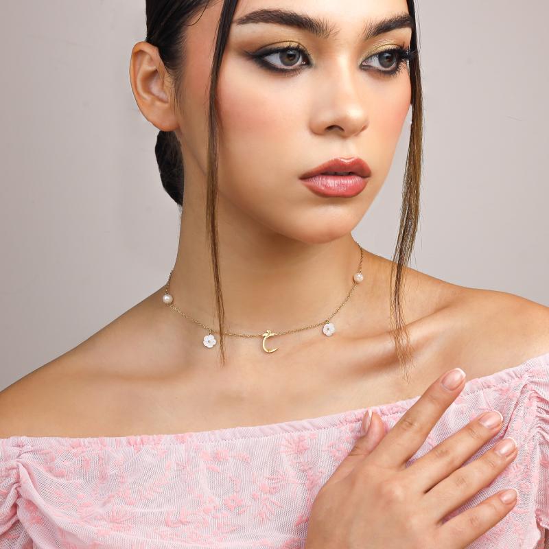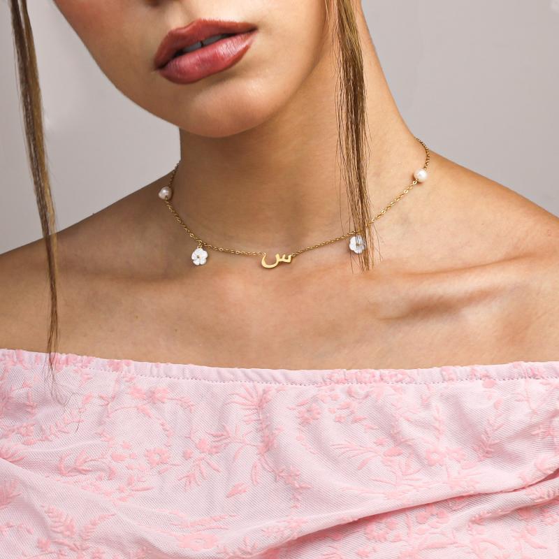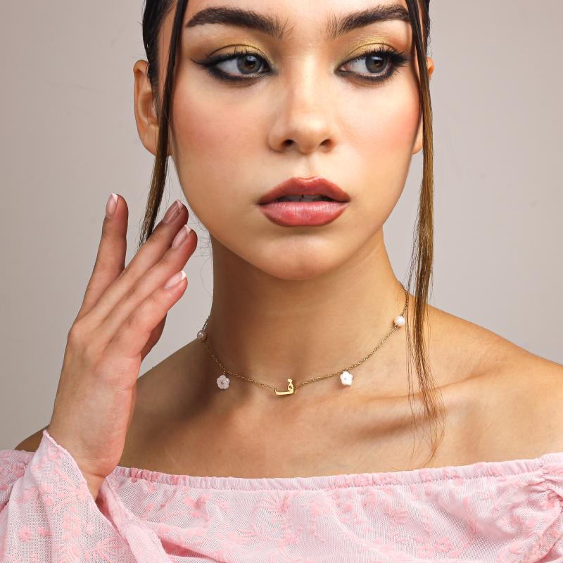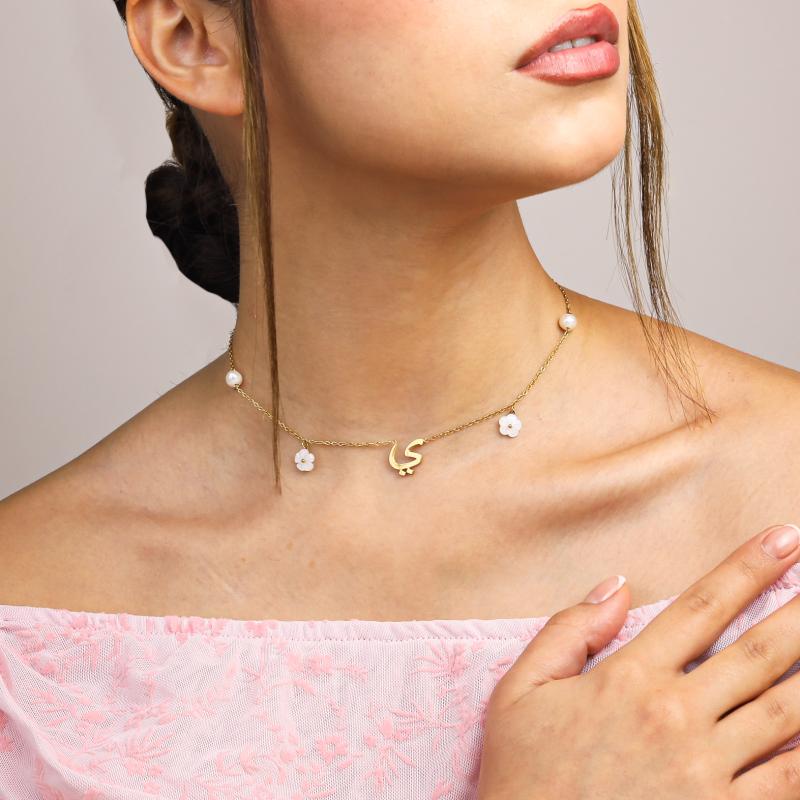 عقد الحرف العربي بلآلئ وزهور