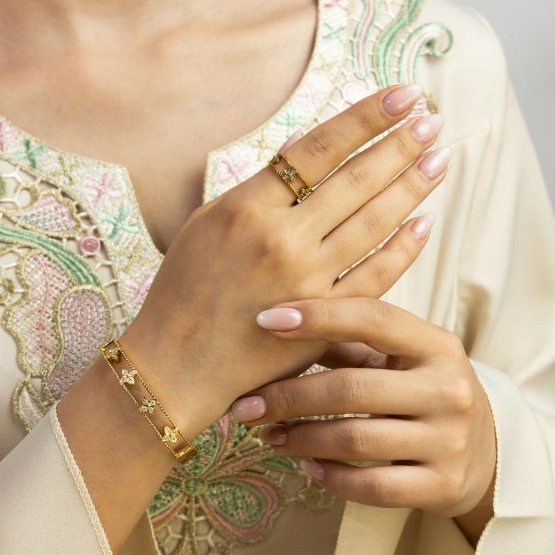 زيني معصمك وإصبعك بهذا الطقم الرائع من الأساور والخواتم، المطلي بالذهب أو الروديوم أو الذهب الوردي حسب اختيارك. هذا الطقم الرائع هو الإكسسوار المثالي لإضافة لمسة من الفخامة والأناقة إلى أي زي. سواء كنتِ تتأنقين لمناسبة خاصة أو ببساطة تضيفين لمسة من السحر إلى مظهرك اليومي، فإن هذا الطقم من الأساور والخواتم سيحقق بالتأكيد هدفك.