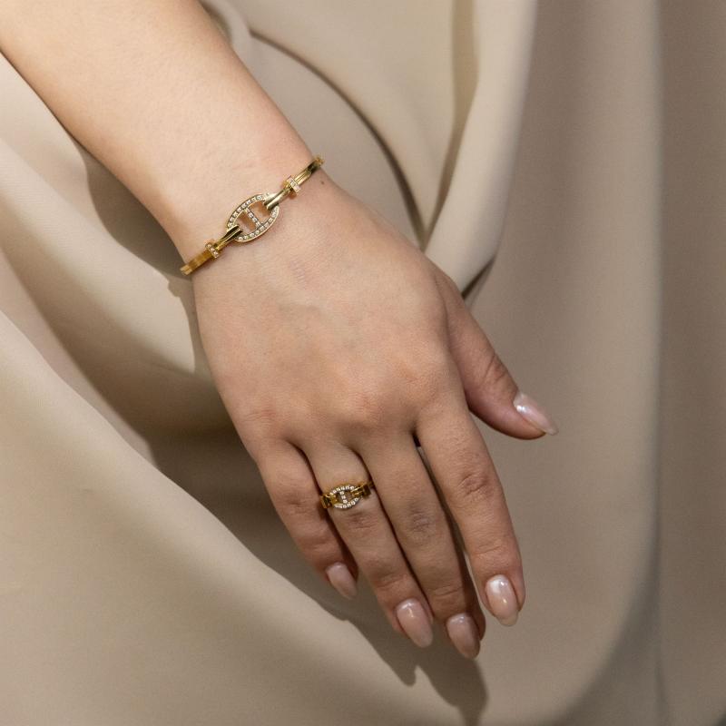 زيني معصمك وإصبعك بهذا الطقم الرائع من الأساور والخواتم، المطلي بالذهب أو الروديوم أو الذهب الوردي حسب اختيارك. هذا الطقم الرائع هو الإكسسوار المثالي لإضافة لمسة من الفخامة والأناقة إلى أي زي. سواء كنتِ تتأنقين لمناسبة خاصة أو ببساطة تضيفين لمسة من السحر إلى مظهرك اليومي، فإن هذا الطقم من الأساور والخواتم سيحقق بالتأكيد هدفك.