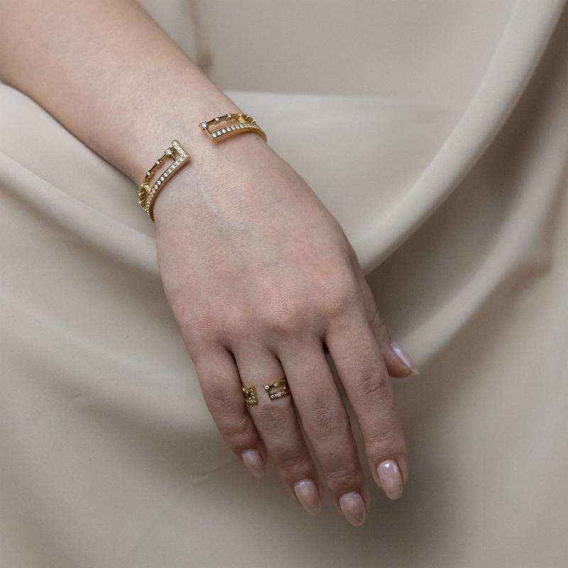 زيني معصمك وإصبعك بهذا الطقم الرائع من الأساور والخواتم، المطلي بالذهب أو الروديوم أو الذهب الوردي حسب اختيارك. هذا الطقم الرائع هو الإكسسوار المثالي لإضافة لمسة من الفخامة والأناقة إلى أي زي. سواء كنتِ تتأنقين لمناسبة خاصة أو ببساطة تضيفين لمسة من السحر إلى مظهرك اليومي، فإن هذا الطقم من الأساور والخواتم سيحقق بالتأكيد هدفك.