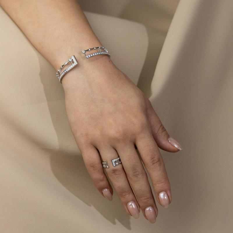 طقم أساور بإطار مزدوج مفتوح مزين بالحجر