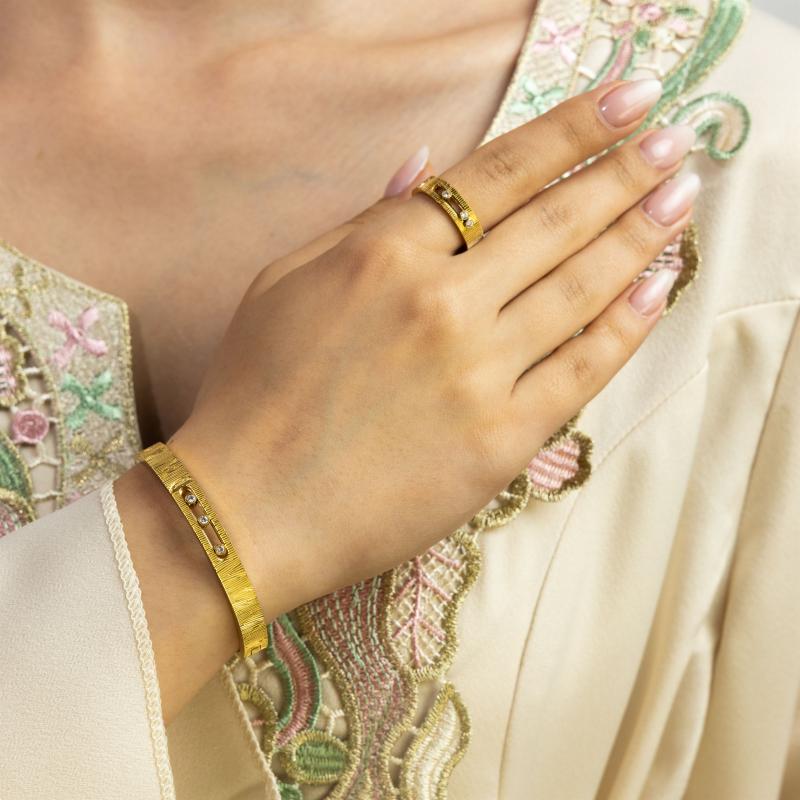 زيني معصمك وإصبعك بهذا الطقم الرائع من الأساور والخواتم، المطلي بالذهب أو الروديوم أو الذهب الوردي حسب اختيارك. هذا الطقم الرائع هو الإكسسوار المثالي لإضافة لمسة من الفخامة والأناقة إلى أي زي. سواء كنتِ تتأنقين لمناسبة خاصة أو ببساطة تضيفين لمسة من السحر إلى مظهرك اليومي، فإن هذا الطقم من الأساور والخواتم سيحقق بالتأكيد هدفك.