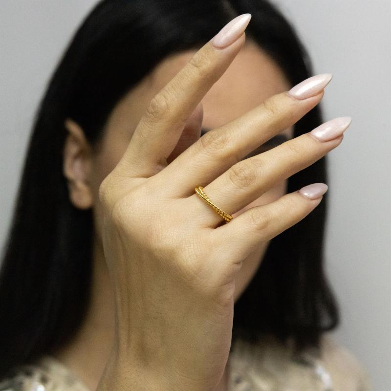 زيني إصبعك بهذا الخاتم الرائع المطلي بالذهب أو الروديوم أو الذهب الوردي حسب اختيارك. هذا الخاتم هو الإكسسوار المثالي لأي مناسبة، من ليلة في الخارج إلى مناسبة رسمية. بفضل تصميمه الأنيق وجودة تصنيعه العالية، من المؤكد أن هذا الخاتم سيلفت الأنظار ويترك انطباعًا دائمًا.