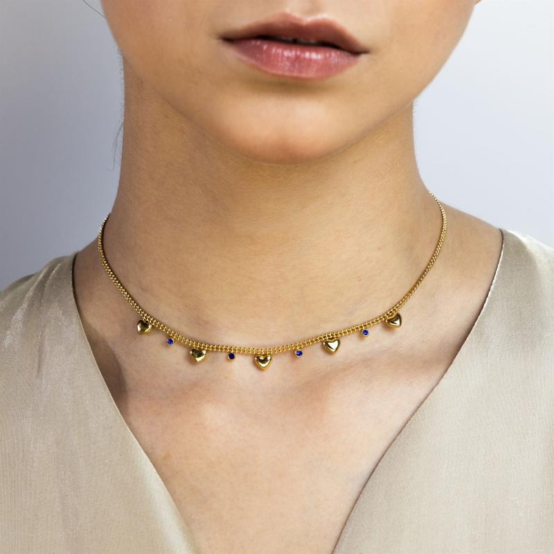 قلادة مزدوجة الخرز بخمسة قلوب بحجر أزرق