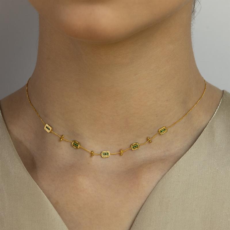 تشوكر مستطيل بالأحجار الزمردية مع خرز ذهبي