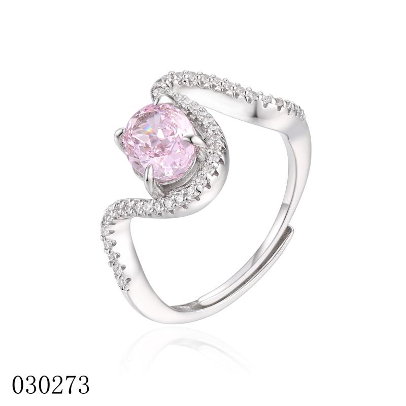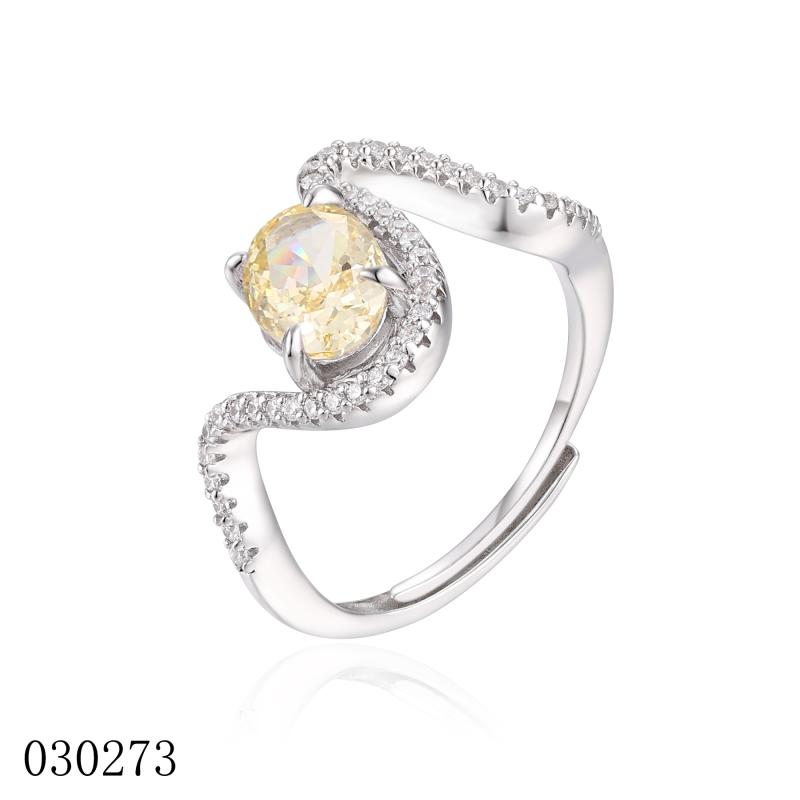 خاتم فضة أصلي بتصميم موجي مع حجر كريستال بيضاوي