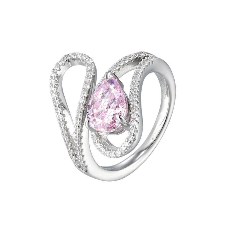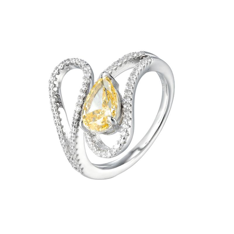 خاتم فضة أصلي بتصميم منحني مجوف مع حجر بشكل دمعة