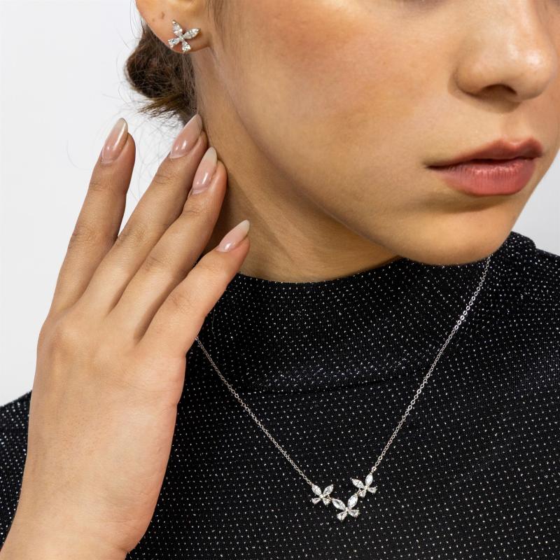 طقم فضة أصلية - فراشات مزخرفة بأحجار ماركيز ملوّنة