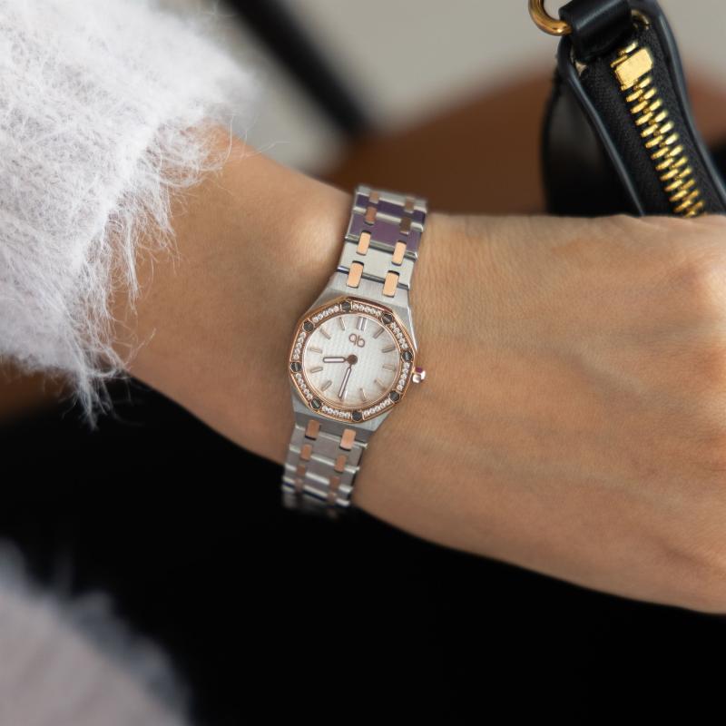 ساعة باريس بوتيك ميني ثمانية الأضلاع بأحجار متناوبة