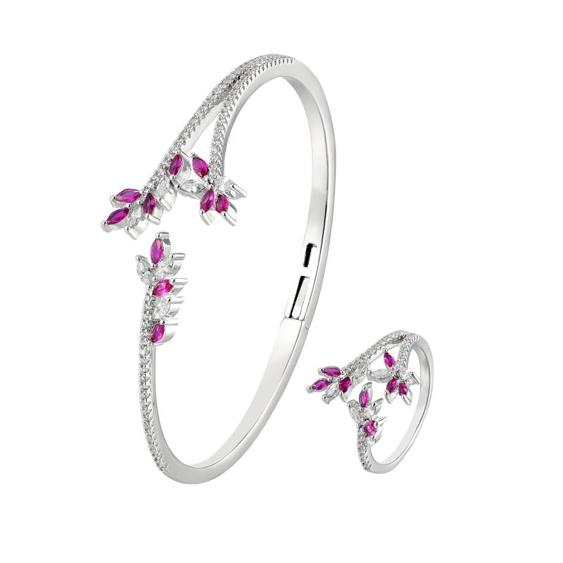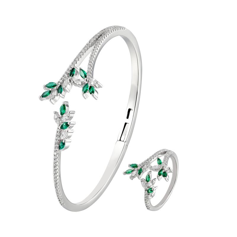 طقم أساور بتصميم أوراق غار مرصعة بالكريستال