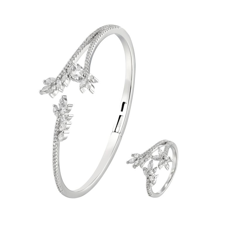 مجموعة إكسسوارات أنيقة للمناسبات، تحتوي على سوار مزين بأحجار الزركونيا، مرفقة بخاتم مطابق. مثالية لإضافة لمسة من التألق إلى أي ملابس للمناسبات الخاصة