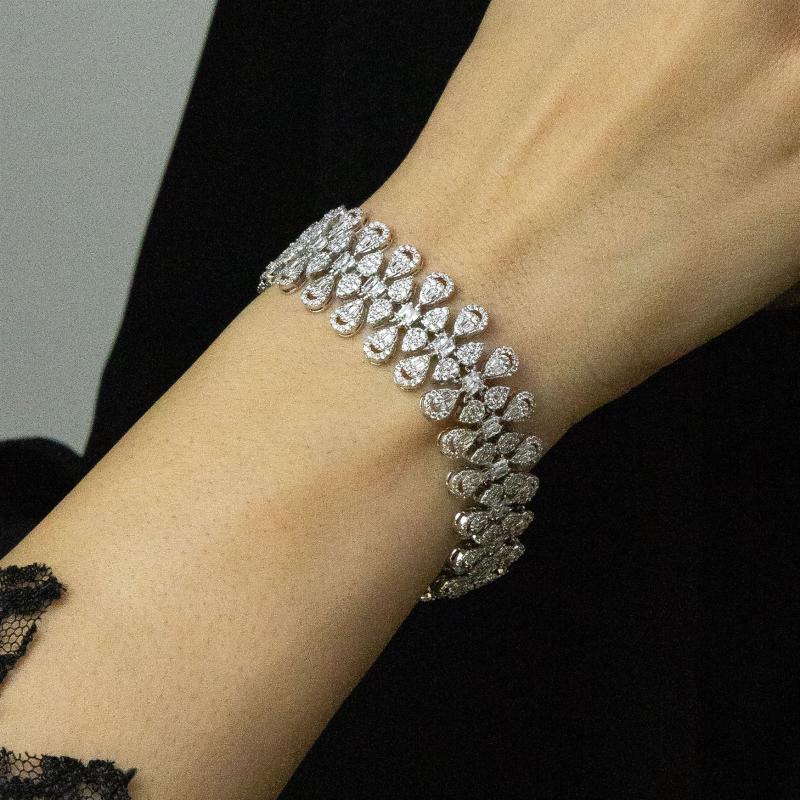 مجموعة إكسسوارات أنيقة للمناسبات، تحتوي على سوار مزين بأحجار الزركونيا، مرفقة بخاتم مطابق. مثالية لإضافة لمسة من التألق