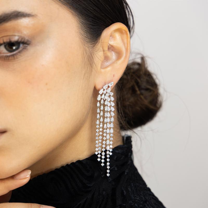 أقراط مرصعة بالكامل بالأحجار بتصميم شلال المطر