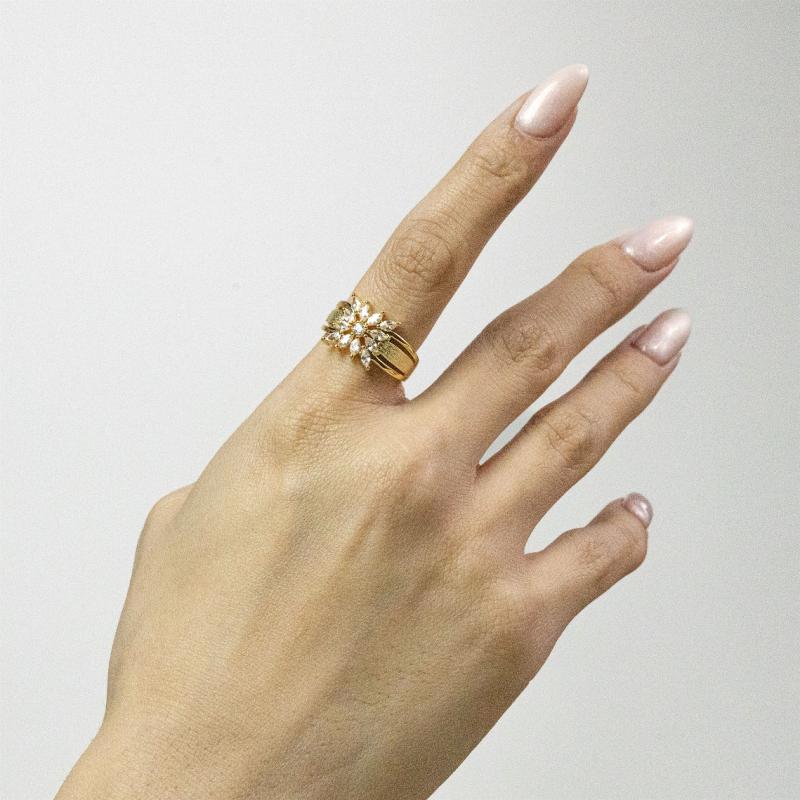 خاتم فضي بتجمع زهور ماركيز مع حجر دائري