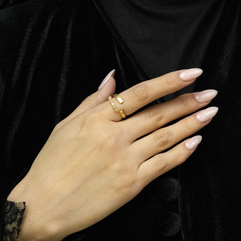 خاتم فضي بشريط حلزوني مع 7 ألماسات
